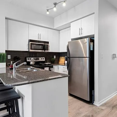 Villan Classy 1Br Plus Den W Amazing Skyline View And Wfh Toronto med 1 sovrum ligger ungefär 25 minuters promenad från The Distillery historiskt område.
